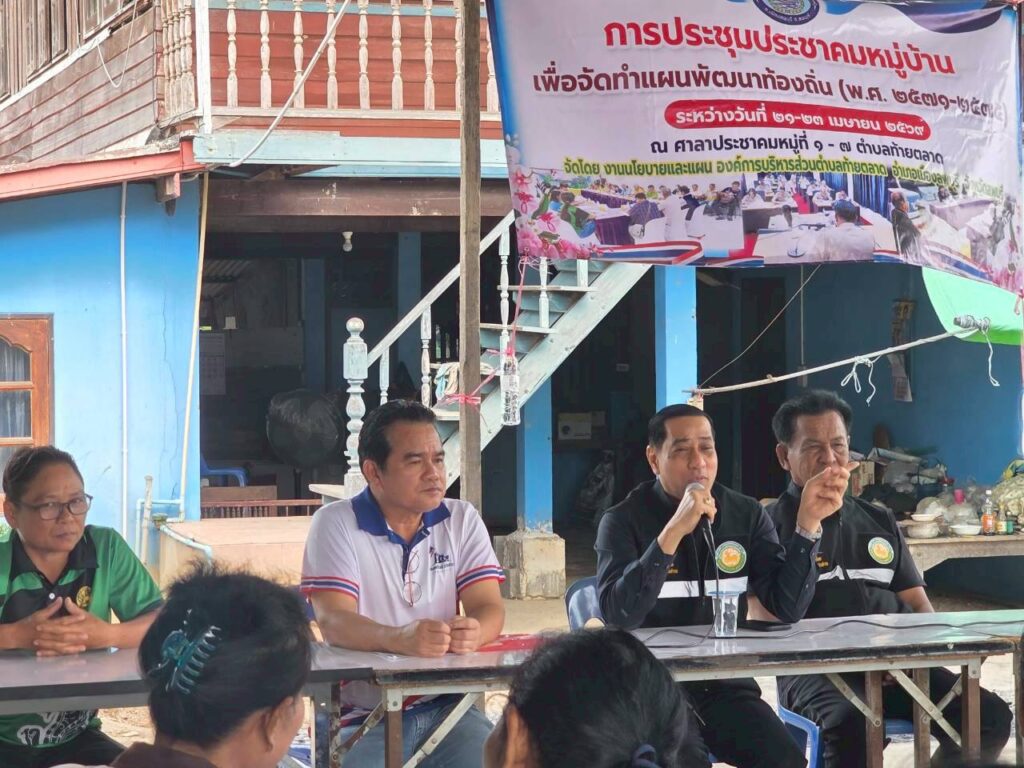 วันที่ 21-23 เมษายน 2569 องค์การบริหารส่วนตำบลท้ายตลาด นำโดย นายสรรพวัฒน์ เกิดชนะ นายกองค์การบริหารส่วนตำบลท้ายตลาด พร้อมด้วยคณะผู้บริหาร สมาชิกสภา อบต.ท้ายตลาด ผู้ใหญ่บ้าน หมู่ที่ 1-7 คณะกรรมการหมู่บ้าน และเจ้าหน้าที่ อบต.ท้ายตลาด ได้ลงพื้นที่เพื่อจัดประชุมประชาคมหมู่บ้าน เพื่อรับฟังปัญหา ความเดือดร้อน ข้อเสนอแนะ การเสนอโครการของพี่น้องประชาชนในตำบลท้ายตลาดทั้ง 7 หมู่ เพื่อนำมาจัดทำแผนพัฒนาท้องถิ่น (พ.ศ.2571-2575)