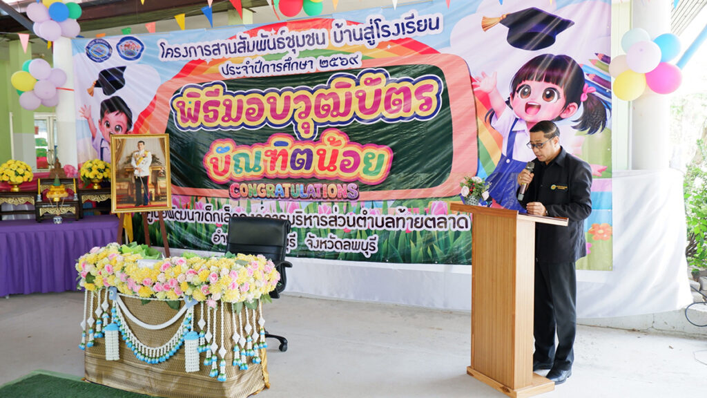ในวันที่ 3 เมษายน 2569 ศูนย์พัฒนาเด็กเล็กองค์การบริหารส่วนตำบลท้ายตลาด นำโดยท่านสรรพวัฒน์ เกิดชนะ นายกองค์การบริหารส่วนตำบลท้ายตลาด พร้อมด้วยว่าที่พันตรี ยุทธนา อารีเอื้อ ปลัดองค์การบริหารส่วนตำบลท้ายตลาด คณะผู้บริหาร สมาชิก อบต.ท้ายตลาด ข้าราชการ พนักงาน ลูกจ้างอบต.ท้ายตลาด ครูและบุคลากรทางการศึกษา ผู้ปกครองและนักเรียนศูนย์พัฒนาเด็กเล็กองค์การบริหารส่วนตำบลท้ายตลาด ร่วมกิจกรรม ” โครงการสานสัมพันธ์ชุมชน บ้านสู่โรงเรียน ประจำปีการศึกษา 2568 ” ณ ศูนย์พัฒนาเด็กเล็กองค์การบริหารส่วนตำบลท้ายตลาด โดยมีวัตถุประสงค์ เพื่อสร้างความรู้ความเข้าใจในการจัดการศึกษาและบทบาทหน้าที่่ของศูนย์พัฒนาเด็กเล็ก บ้านและชุมชน ได้ตระหนักถึงความสำคัญของเด็กปฐมวัย ตลอดจนปลูกฝังทักษะชีวิตที่ดีต่อไปในอนาคต